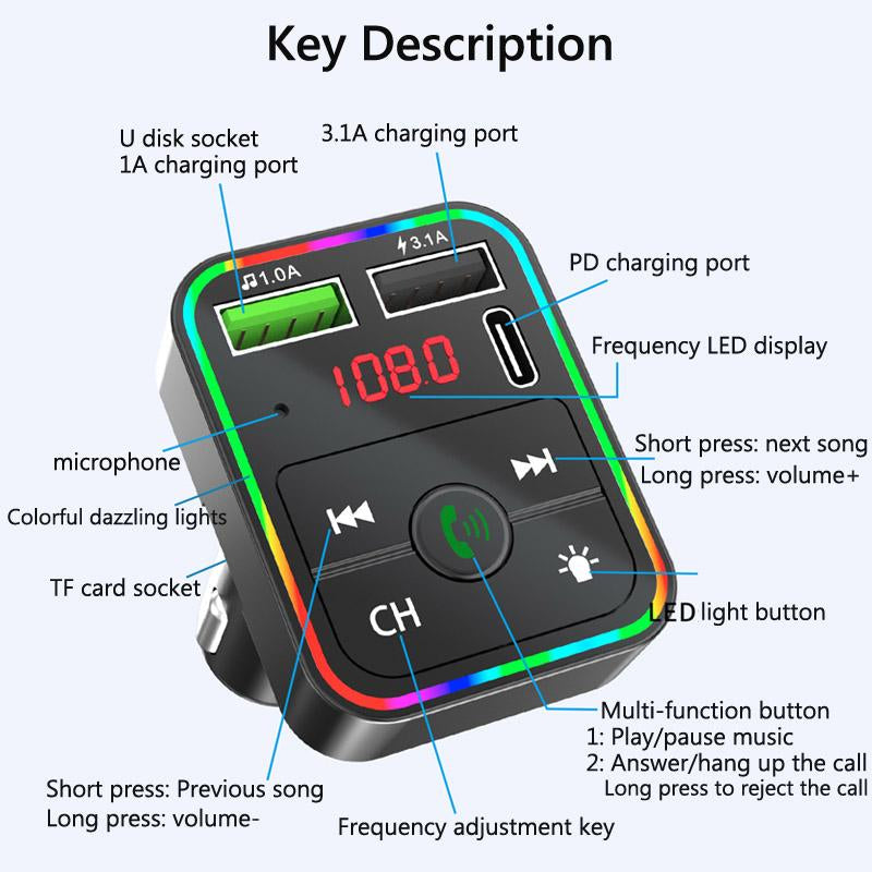 CarF2 Multifunction Bluetooth 5.0 FM Transmitter Type C